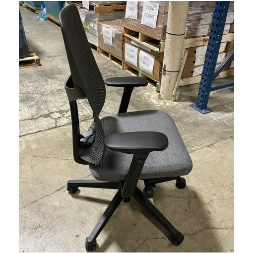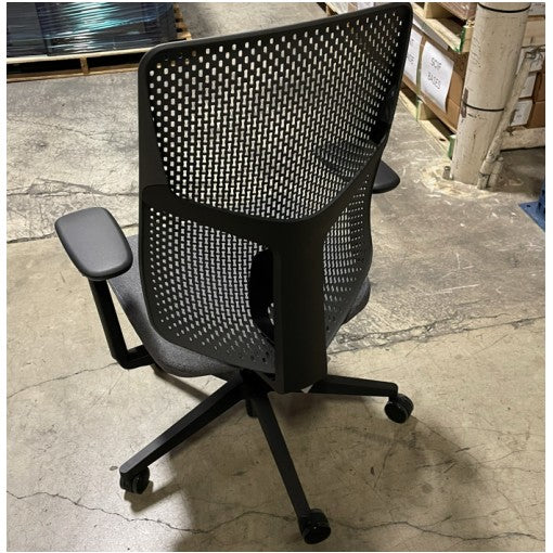 Herman Miller Verus Task Chair, Triflex Polymer Back, Standard Height, Semi Synchronous w/ Tild Limiter, Fully Adjustable Arms, Seat Depth Adj, Adjustable Lumbar Support, Black Base & Frame, Dark Carbon Polymer Back, Dual Floor Casters, Medley Charcoal Seat Fabric